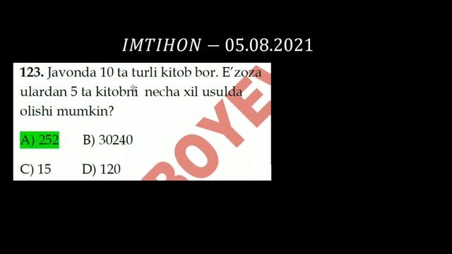 IMTIHON 05.08.2021 (3-qism) | Misol va yechimlari