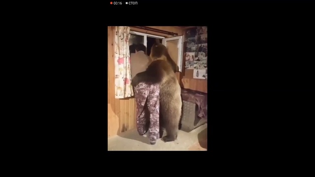 Медведь обнял хозяина у окна. #медведь #милота #дружба