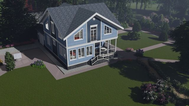 Дизайн-проект экстерьера каркасного коттеджа в американском стиле, с использованием сайдинга Mitten