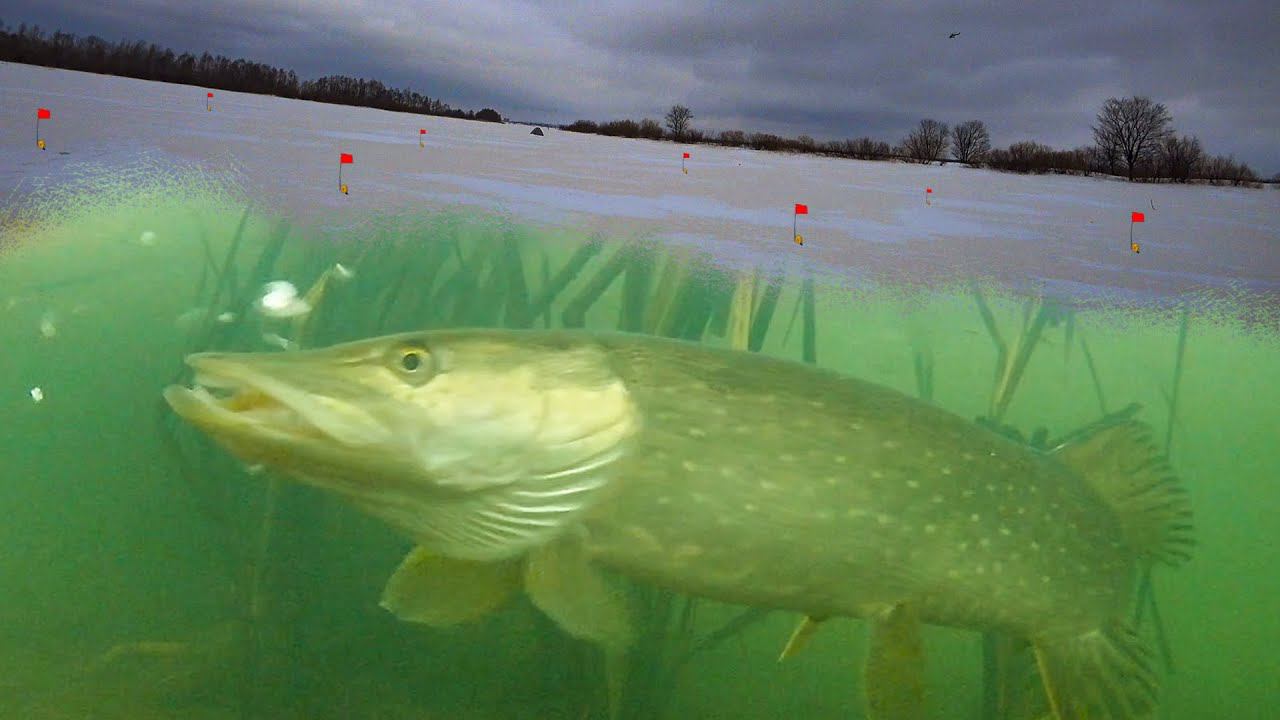 Что вытворяет эта щука?!Рыбалка на жерлицы/Подводные съемки.
