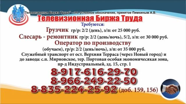 Вакансии и телефоны прямых работодателей в специализированной программе по трудоустройству "Телевизионная Биржа Труда" - г.Ульяновск