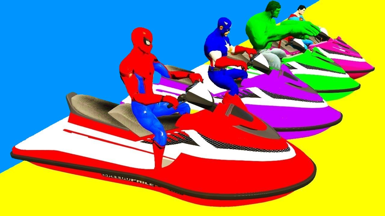 Цветные гидроциклы и внедорожные мотоциклы Супергерои и Человек-паук мультфильм для детей и малышей