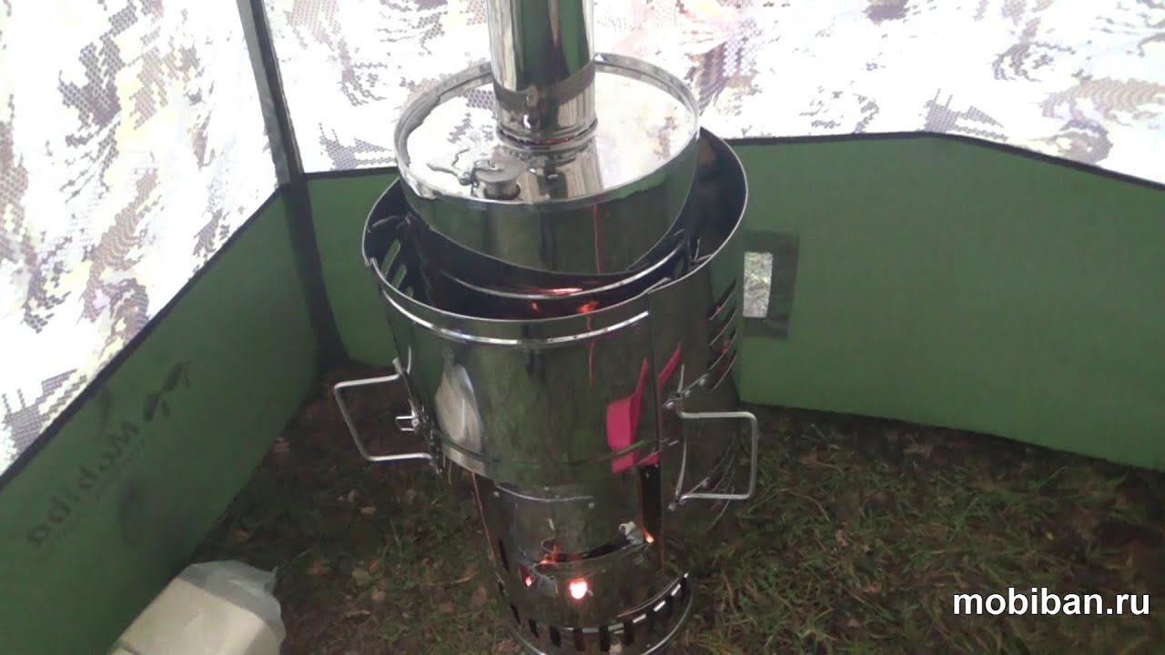 Печь КЦ-1 с вертикальной топкой и со встроенным парогенератором. Работает уже через 5 минут после растопки. Мощный поток пересушенного пара заполняет парилку Мобиба МБ-10. Температура держится в диапазоне 80-100 С. Используются топливные брикеты! Купить КЦ-1 можно здесь: http://mobiban.ru