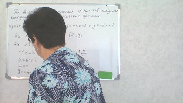 Алгебра 7 класс. Линейная функция. Решение задания. Не выполняя построения графиков, найдите координаты точки пересечения прямых.