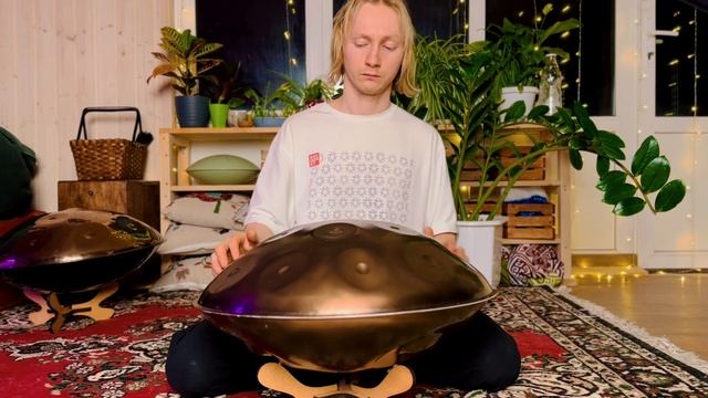 Друзья, наша хэндпан-мастерская продолжает развиваться, и вот мы уже готовы показать вам наш первый двухсторонний хэндпан с большим количеством нот. Двухсторонний хэндпан, 17 нот. Тональность: Ре-минор. Звукоряд: D3 E3 F3 G3 A3 C4 D4 E4 F4 G4 A4 C5 D5 E5 F5 G5 A5 Материал: нержавеющая сталь. Двухсторонний хэндпан открывает большие возможности для виртуозной игры. Широкий диапазон звучания: от глубоких низких звуков до ярких и высоких. Удобное расположение нот позволяет быстро познакомиться с хэндпаном и начать импровизировать. Со временем освоения инструмента он будет приоткрывать для игрока все новые и новые созвучия, мелодические ходы, оттенки настроений. Тэги: #ханг #hangdrum #handpan