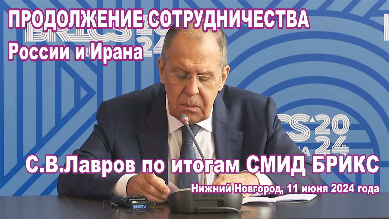 С.Лавров по итогам СМИД БРИКС, Нижний Новгород, 11 июня 2024 года. Сотрудничество России и Ирана.