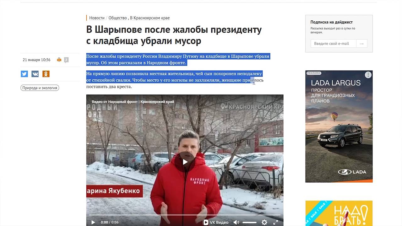 В Шарыпове после жалобы президенту с кладбища убрали мусор. Под таким заголовком появилась новость на просторах интернета.