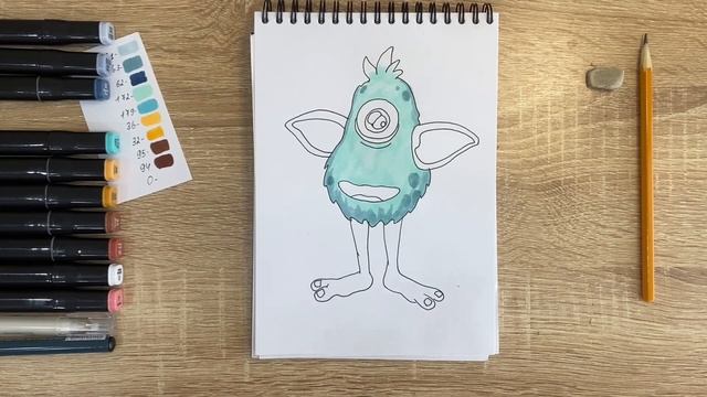 Как нарисовать поющего монстра карандашом и скетч маркерами | Рисунок для детей, поэтапно и легко