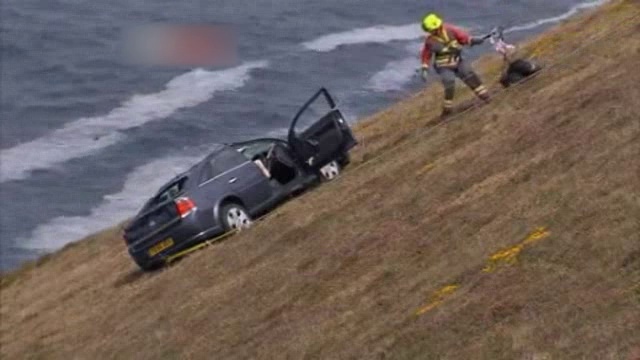 Женщина-водитель из Великобритании провела 20 часов в машине, которая зависла на краю пропасти, боясь пошевелиться.