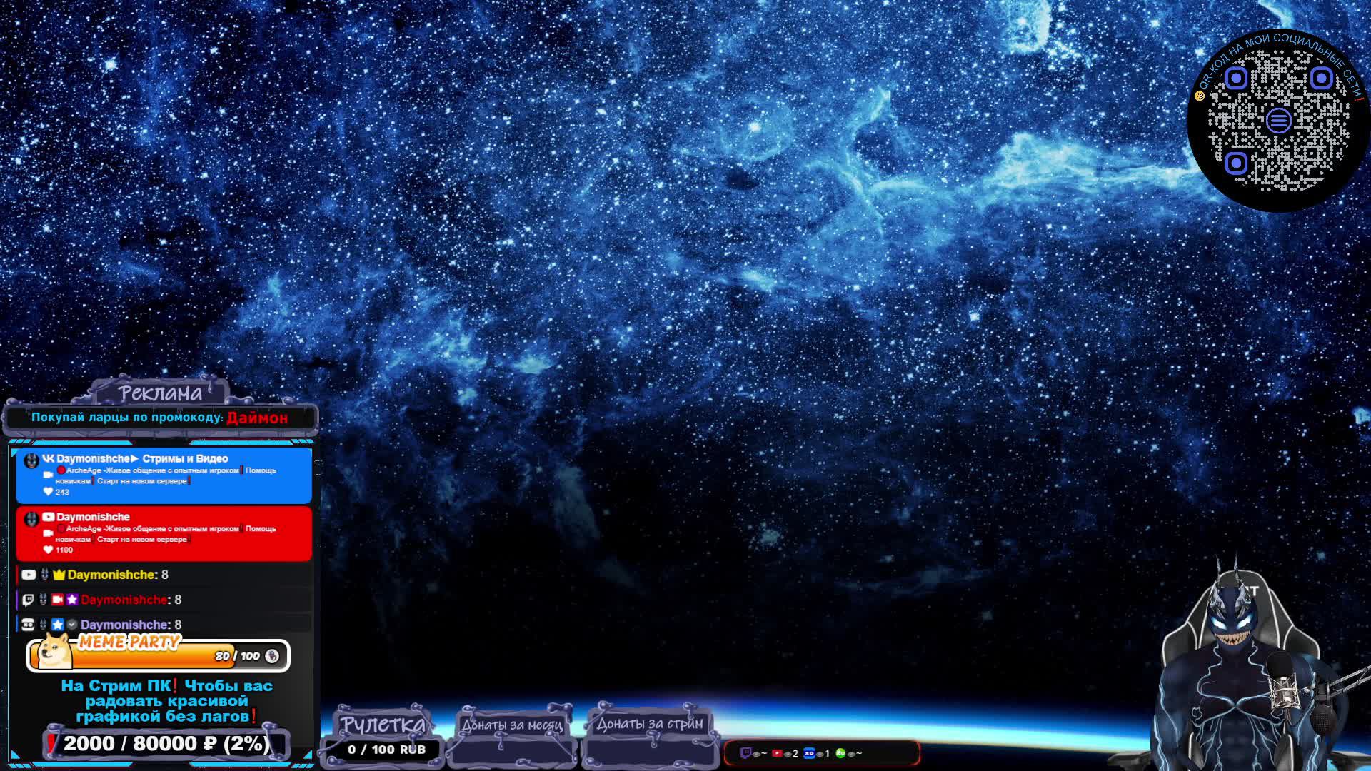 📣Мои социальные сети❗- https://taplink.cc/daymonishche Стриммерством занимаюсь фултайм, и это мой единственный заработок, если у вас есть желание поддержать канал, вот способы как это сделать: 💲1-DonationAlerts Рулетка запускается тут!- https://clck.ru/36VfBR 💲2-Поддержать напрямую Карта МИР Сбербанк- 2202 2067 8729 8624 💲3-Yoomoney- https://clck.ru/37Dfe3 -Без оповещения 💲4-Donatepay- https://clck.ru/37Dfba -Если не получается поддержать через DonationAlerts Благодарю за вашу поддержку❗ ___________________________________________________________________________________________________ Прайс-лист 1️⃣-Отключить аватара на весь стрим (стример покажет своё настоящие лицо)-4999 руб 2️⃣- Заказ Аниме: 500р. за 1 серию (заказ только сразу на фулл аниме) 3️⃣-Заказ фильма: 3999р. 4️⃣-Заказ музыки 50р не длиннее 7 мин, лютый треш могу выключить. ___________________________________________________________________________________________________ 🎸🤣💥Развлечения на стриме❗ 1️⃣🎸Закажи песню на стриме❗-https://donateall.online/s/daymonishche 2️⃣🤣Порадуй зрителя и стримера крутым мемасом❗- https://memealerts.com/6576818d422c4bf13b328d96 3️⃣💥Хочешь отключить экран/клавиатуру/мышку стримеру или кинуть скримера и светошумовую гранату на весь его экран❓ Тебе сюда❗- https://streamengine.app/@daymonishche/effects ___________________________________________________________________________________________________ https://clck.ru/35XhRk – лучшие игровые предметы по моему кодовому слову! Реклама. ООО «АСТРУМ». ИНН 7714480355 ERID 2VtzqxTGdmq 🎁Секретное слово для приобретения сундуков - Даймон 🎮https://trk.mail.ru/c/wm7t23?mt_sub1=4257423 -Начни играть в ArcheAge с бонусами! Реклама. ООО «АСТРУМ». ИНН 7714480355 ERID 2VtzqwHGHQ3 📢Гайд на ведьмака+ мини гайд на угнетателя- https://youtu.be/PpGj8LNDYoE ___________________________________________________________________________________________________ ❗️❗️Правила канала❗️❗️ 1️⃣-Если стример или модераторы заметят что вы абузите твинов в розыгрыше БАН! 2️⃣-Будьте доброжелательны к другим зрителям и стримеру 3️⃣-Избегать обсуждения религии и политики 4️⃣-Мат в меру или пропишу БАН! 5️⃣-За расизм, сексизм, гомофобию и т.п. можно отлететь в БАН! #tl #archeage #daymonishche #стрим #streamer #стример #top #топ #даймонище #архейдж #recommended #рекомендации #venom #веном #тл #тронлиберти #тронэндлиберти #throneandliberty #throneliberty