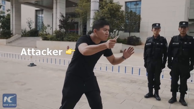 В Китае показали, как правильно защититься от преступника с ножом. #прикол #самозащита #учение #китай