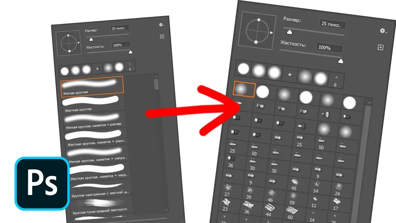 В этом видео я покажу как изменить миниатюры кисти в фотошопе 2020. Простой урок для начинающих о том как вернуть старое отображение миниатюры кисти в новом фотошопе 2020. Я использую Adobe Photoshop 2020 Картинка: https://drive.google.com/open?id=1qcOTdiJOtw5muWsIlwClJyALmrXZ9I4I