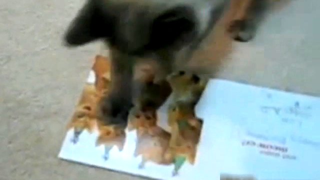 Кот играет на открытке