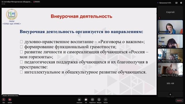 Школьное методическое объединение педагогов гуманитарного цикла 11 сентября 2023
