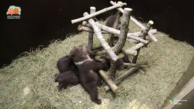 В первую очередь хотим поделиться с вами радостной новостью - в этом году у нас состоялась масштабнейшая реновация игровой зоны, в результате чего она увеличилась в два раза! И теперь у нас есть возможность разделять либо объединять медвежат в случае необходимости. Как же сейчас чувствует себя медвежий народ? Все девять медвежат практически все время проводят в игровой зоне. Лишь изредка мы их рассаживаем по боксам, например, для проведения уборки помещения. Название «игровая», безусловно, предполагает медвежьи игры, чем, собственно, медвежата и пытаются заниматься, хотя пока еще так неуклюже! На самом деле игры – это очень важный этап в жизни каждого детеныша. Ведь это не только интересное времяпрепровождение с собратьями, но и способ приобретения и развития необходимых навыков, плюс – хорошая физическая нагрузка. Как только медвежата начали ходить, мы установили для них так называемые медвежьи тренажеры – конструкции из тонких стволов деревьев, при помощи которых они уже сейчас могут начинать осваивать навыки лазания по деревьям. Медвежата еще не так активны, какими скоро станут, и игры зачастую проходят все еще в «нижнем ярусе» - медленно и неловко. Но все впереди! А сейчас шаги еще не очень уверенные, игры весьма размеренные, но интерес к тренажеру заметен – кто-то из медвежат уже пытается вскарабкаться на него, хотя лапы еще непослушные, а кто-то – только на зуб пробует. Но пока медвежата все еще предпочитают общение друг с другом, ведь так приятно покусать лапы да бочка брата или сестренки. А тренажер будет освоен чуть позже! Изначально мы в одну игровую поместили Бузю, Ангелочка, Богдана и Богатыря, а в другой игровой объединили медвежат из Смоленской области, которым мы дали имена Серафим, Сёма и Сима, и из Вологодской области (Весна и Вьюга), так как все пять медвежат были приблизительно равных размеров – поменьше, чем первая четверка. Но наблюдения за медвежатами показали, что Весна и Вьюга гораздо лучше физически развиты, и поэтому Серафиму, Сёме и Симе, которые еще не очень хорошо стоят на лапах, сложно находиться рядом с такими бойкими и активными медведицами – сил дать отпор еще нет. Поэтому мы попробовали объединить медвежьих девочек с Бузей, Ангелочком, Богданом и Богатырем. И это решение было правильным – несмотря на разницу в размерах и весе, медвежата общаются на одном уровне, и каждый из них может постоять за себя. ✔️Напомним, медвежата содержатся в Медвежьем домике, где они максимально изолированы от звуков и запахов, сопровождающих жизнь человека. А для животных, которые будут возвращены в природу, очень важно минимальное присутствие человека в их жизни, чтобы не допустить привыкания к нему! По мере роста и взросления медвежат наше присутствие в их жизни сокращается. Но при этом, конечно же, мы постоянно наблюдаем за ними. Но делаем это незаметно для медвежат. _______ #ФондПрироды #ПрезидентскиеГранты Центр спасения медвежат-сирот: orphan-bear.org