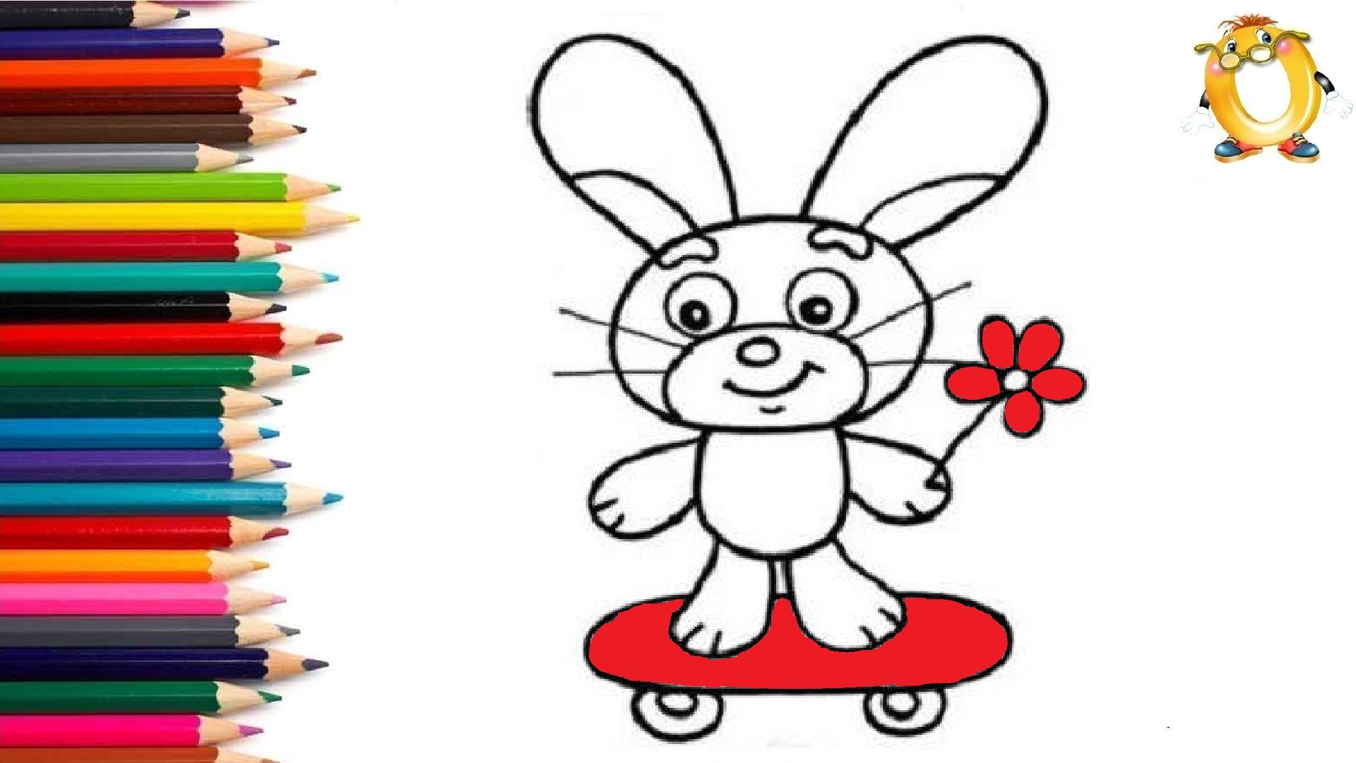 Мультик - раскраска для детей ЗАЯЦ НА СКЕЙТЕ. Учимся как рисовать ЗАЙЧИКА НА СКЕЙТЕ // ОБУЧАШКА ТВ