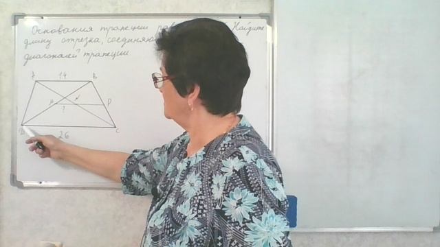 Решение задачи. Основания трапеции равны 14 и 26. Найдите длину отрезка, соединяющего середины диагоналей трапеции. Задание 3.2.33. Задача. #ОГЭучебник2023 И. В. Ященко.