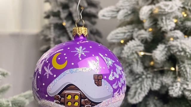 Елочный шар ЛЕСНАЯ ИЗБУШКА лиловый, 85 мм, С1548-лил