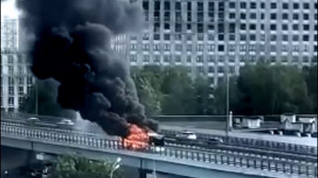 Полыхает автобус на Новокурнинском