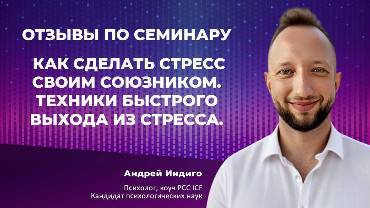Ссылка на семинар "Как сделать стресс своим союзником. Техники быстрого выхода из стресса" - https://andreyindigo.com/vykhodizstressa Семинары Андрея Индиго: https://andreyindigo.com Записаться на личную диагностическую сессию: http://t.me/Indigopeople_assistant Закрытая группа "Практика на миллион" для психологов и коучей: https://t.me/+hlCZO6w-hBoyZTYy Подписывайтесь на мои социальные сети: Телеграм: https://t.me/AndreyIndigo INST: https://www.instagram.com/andrey.indigo/ ВК: https://vk.com/andrey.indigo