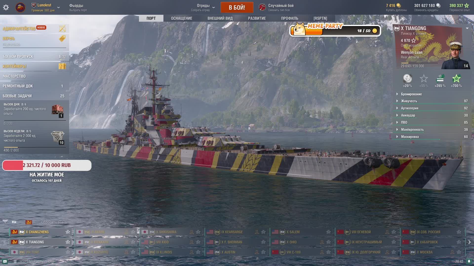 Мир кораблей - TIANGONG Линкор Пан Азии 10 уровень прокачки)