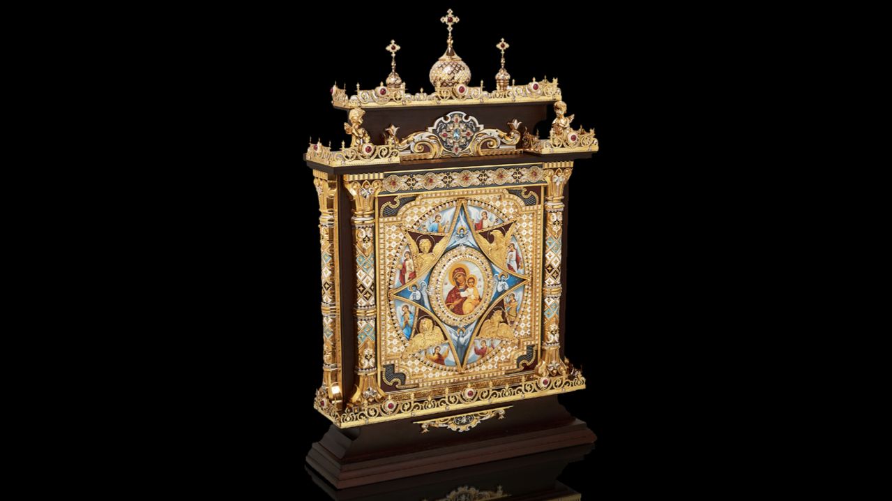 Икона «Неопалимая Купина» в киоте из ясеня