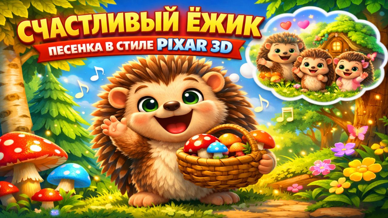 Спасибо за просмотр! Поддержите канал лайком и подпиской, чтобы не пропустить новые видео.Песенка счастливого ёжика в стиле Pixar 3D анимации показывает весёлого ёжика, поющего в волшебном лесу с яркими цветами и кинематографическим освещением. Эта анимация про счастливого ёжика демонстрирует милого персонажа, который ищет грибочки под деревьями в красочном мультяшном мире. Песенка ёжика в стиле Pixar подчёркивает эмоциональный сюжет, насыщенные локации и плавную 3D анимацию высокого качества. В этом анимационном музыкальном видео ёжик с радостью думает о семье, собирая грибочки в сказочном лесу. Мультяшный ёжик окружён светящимися цветами, причудливыми деревьями и мягким кинематографическим светом. Эта 3D анимация ёжика выполнена в ярком мультяшном стиле с выразительными персонажами и детализированными текстурами. Песенка про ёжика создаёт позитивное настроение, атмосферу волшебного леса и захватывающий визуальный стиль. Это анимационное видео в стиле Pixar объединяет музыку, сюжет и яркий дизайн, создавая привлекательный ролик про ёжика.