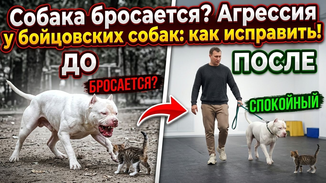 Ваша бойцовская собака бросается на кошек или других животных? В этом видео мы разберем, почему такое поведение возникает у амбулей, питбулей и стаффов, и как эффективно скорректировать агрессию с помощью правильной игры. Забудьте о жестких методах — покажем гуманный подход, который сделает вашу жизнь с питомцем комфортнее и безопаснее. Таймкоды: 00:00 — Что делать, если собака бросается? 00:30 — История Рички: почему собака агрессивна? 01:03 — Причины агрессии у буль-типов: инстинкт добычи, страх, тревожность. 01:44 — Можно ли контролировать агрессию? 02:32 — Важность игры в коррекции поведения. 03:24 — Как игра помогает контролировать инстинкт добычи. 04:13 — Практическое упражнение: игра с переключением. 05:02 — Простое упражнение: что оно дает? 05:20 — Демонстрация: как отвлечь собаку от добычи. 06:10 — Микроостановки: как «выключить» мозг собаки. 07:09 — Почему удавки и электрошокеры не работают. 08:36 — Первые шаги: с чего начать коррекцию агрессии. 08:54 — Создаем мостик: как перенести навыки на реальные ситуации.