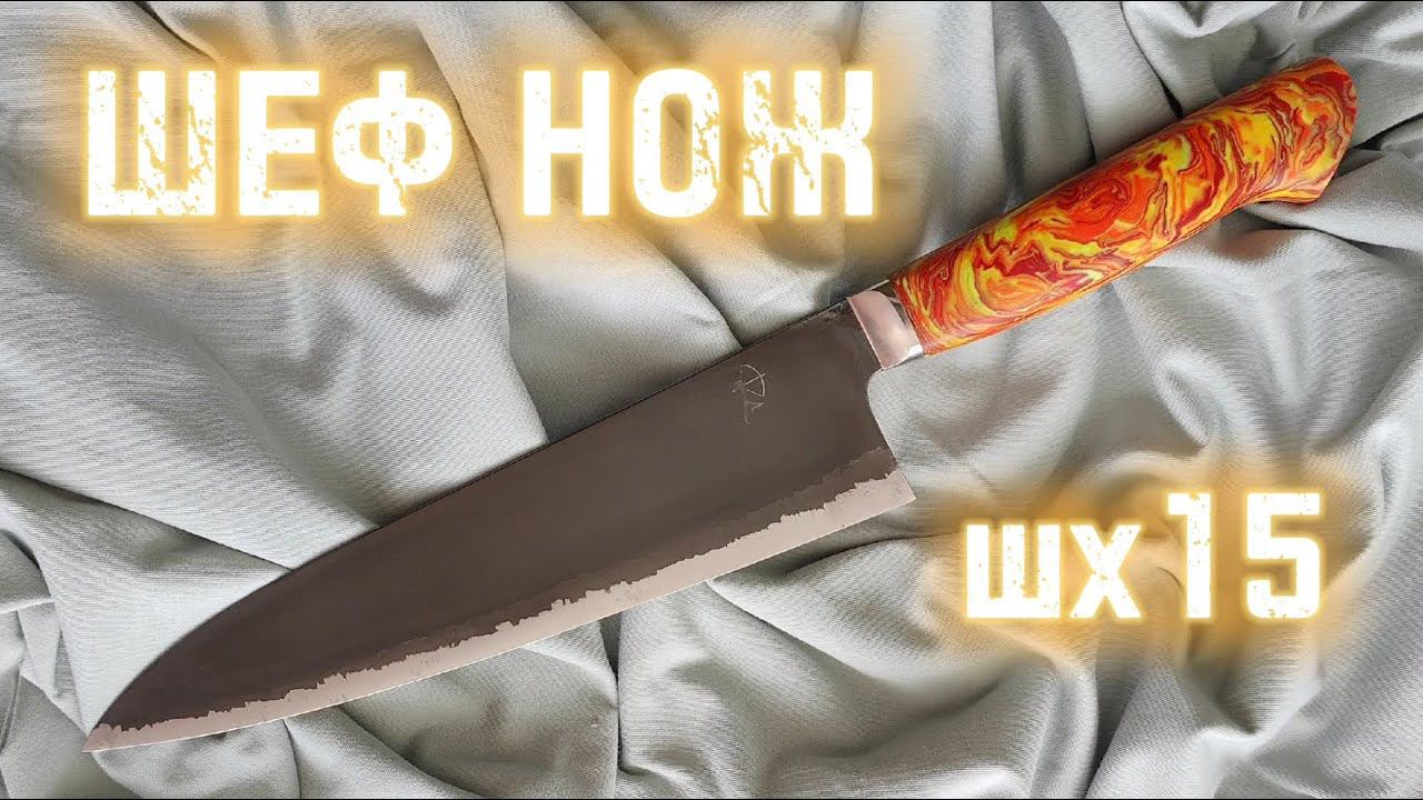 ПОРЕЗУХИ Шеф нож из кованой стали, S grind. Автор ножа Петр Смородников/ ШХ-15 Александр Kuzsan