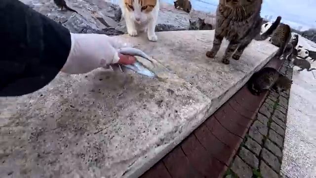 Стамбульские котики с нетерпением ждут своего рыбака