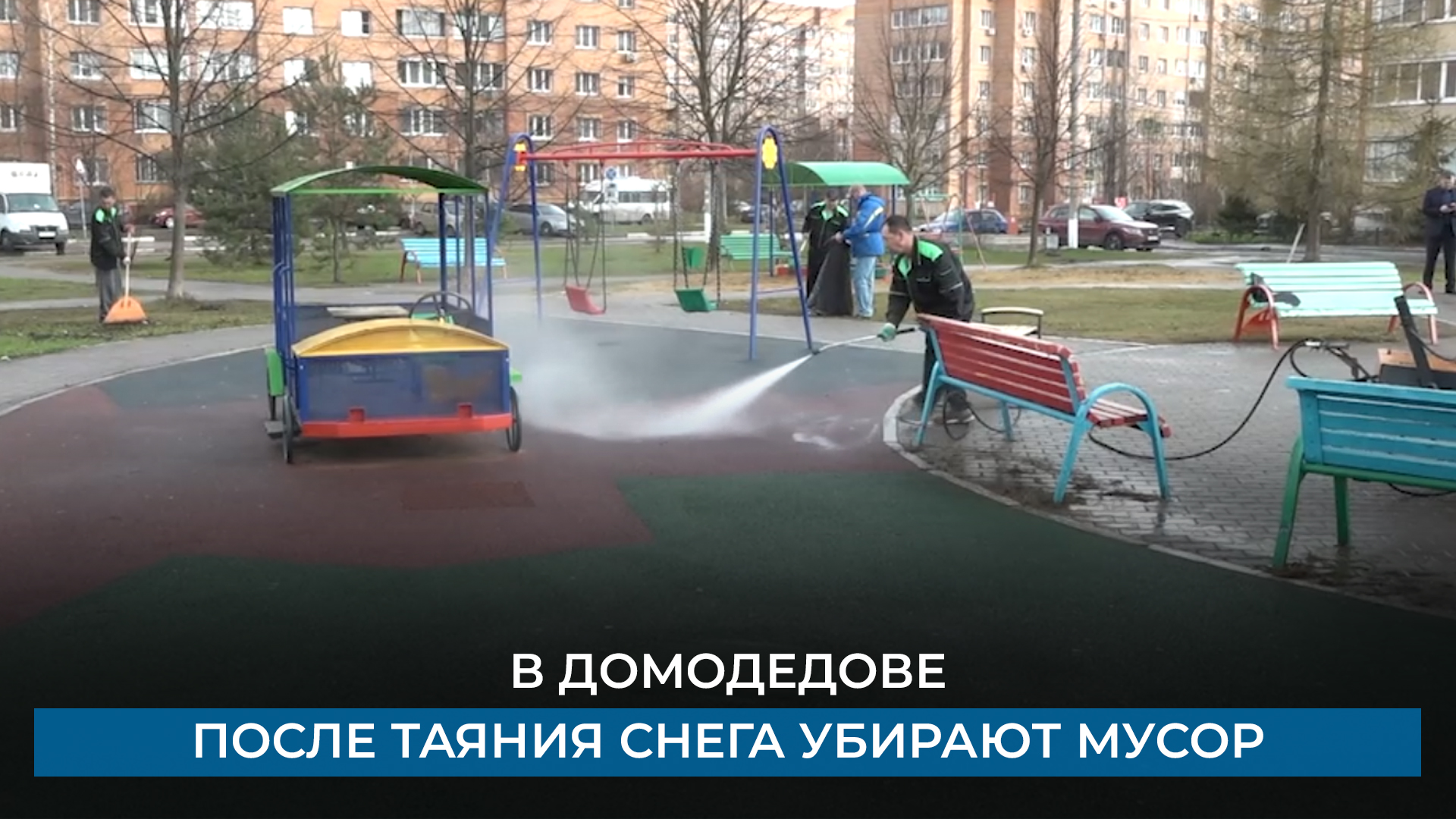 В Домодедове после таяния снега убирают мусор