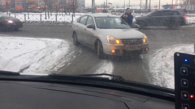 Неадекватный водитель автомобиля Ниссан заградил путь скорой помощи.