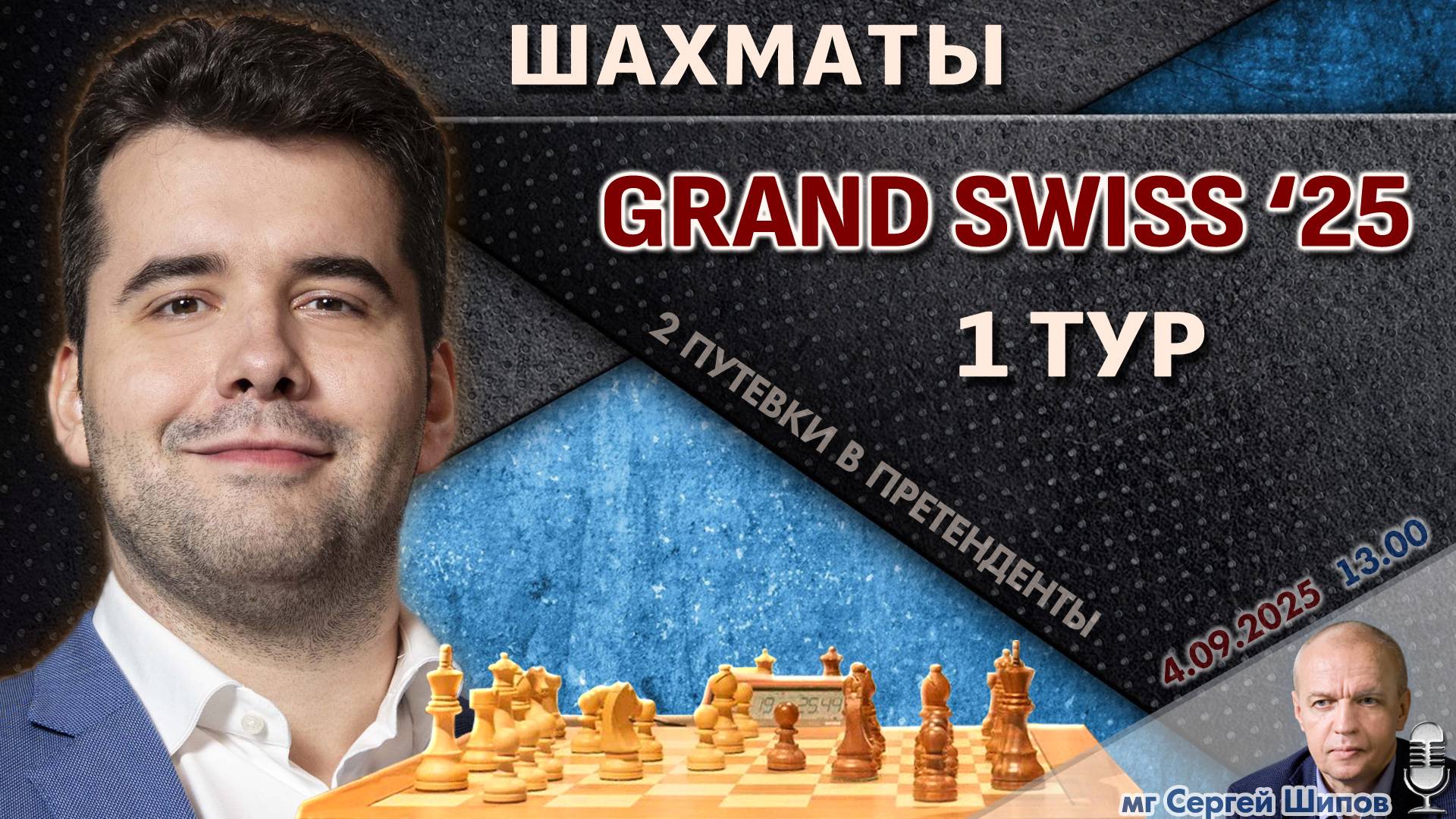 Гранд-швейцарка 2025. 1 тур ⏰ 4 сентября, 13:00 🎤 Сергей Шипов ♕ Шахматы