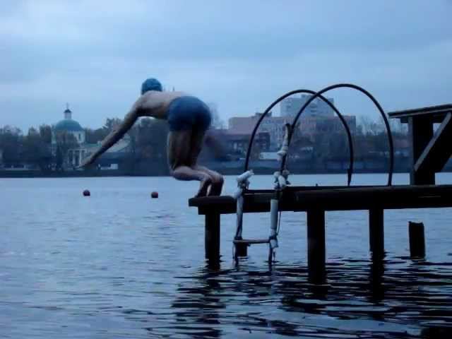 Закаливание. Купание в озере глубокой осенью