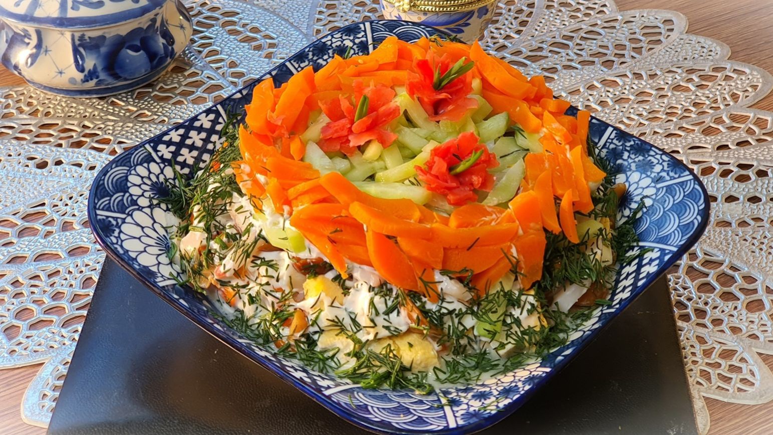 Салат с маринованными кальмаром и опятами