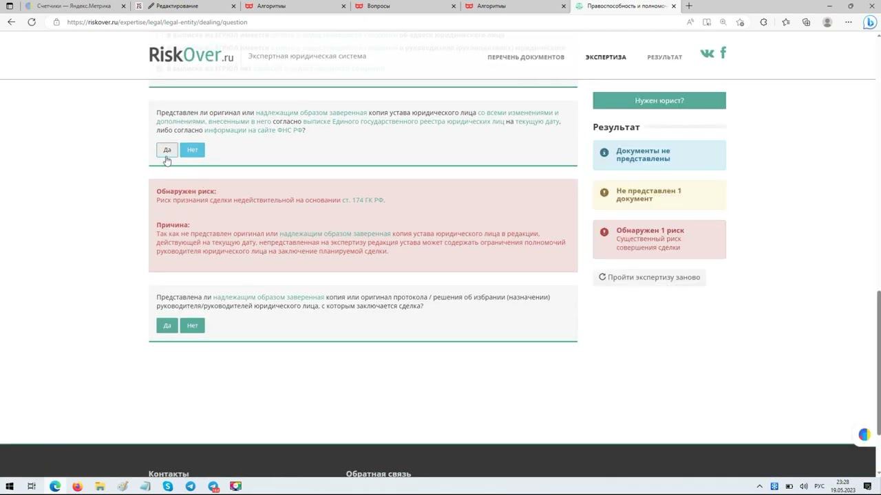 Фрагмент выявления юридического риска с помощью экспертной юридической системы Riskover.ru
