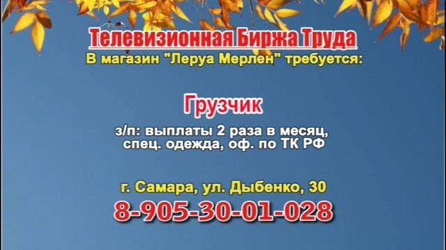 Вакансии и телефоны прямых работодателей в специализированной программе по трудоустройству "Телевизионная Биржа Труда" - г.САМАРА, г.ТОЛЬЯТТИ т/к РЕН-ТВ