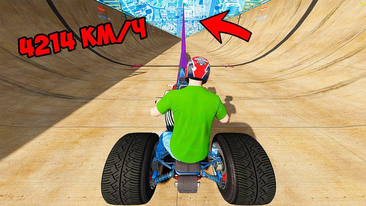 СПУСК БЕЗ ТОРМОЗОВ НА САМОМ ДЛИННОМ МОТОЦИКЛЕ ПО ТРАМПЛИНУ ГТА 5 МОДЫ РАЙЛЮХА