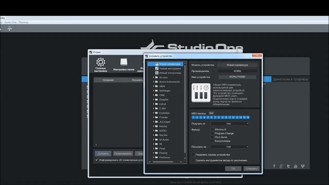 Создание нового миди-устройства в Studio One