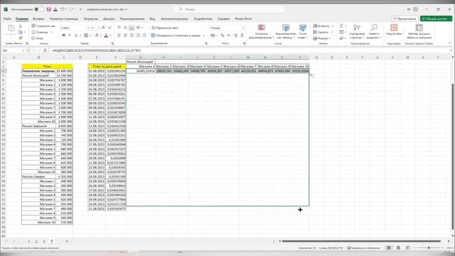 Как быстро посчитать план для каждого магазина в регионе по дням в excel