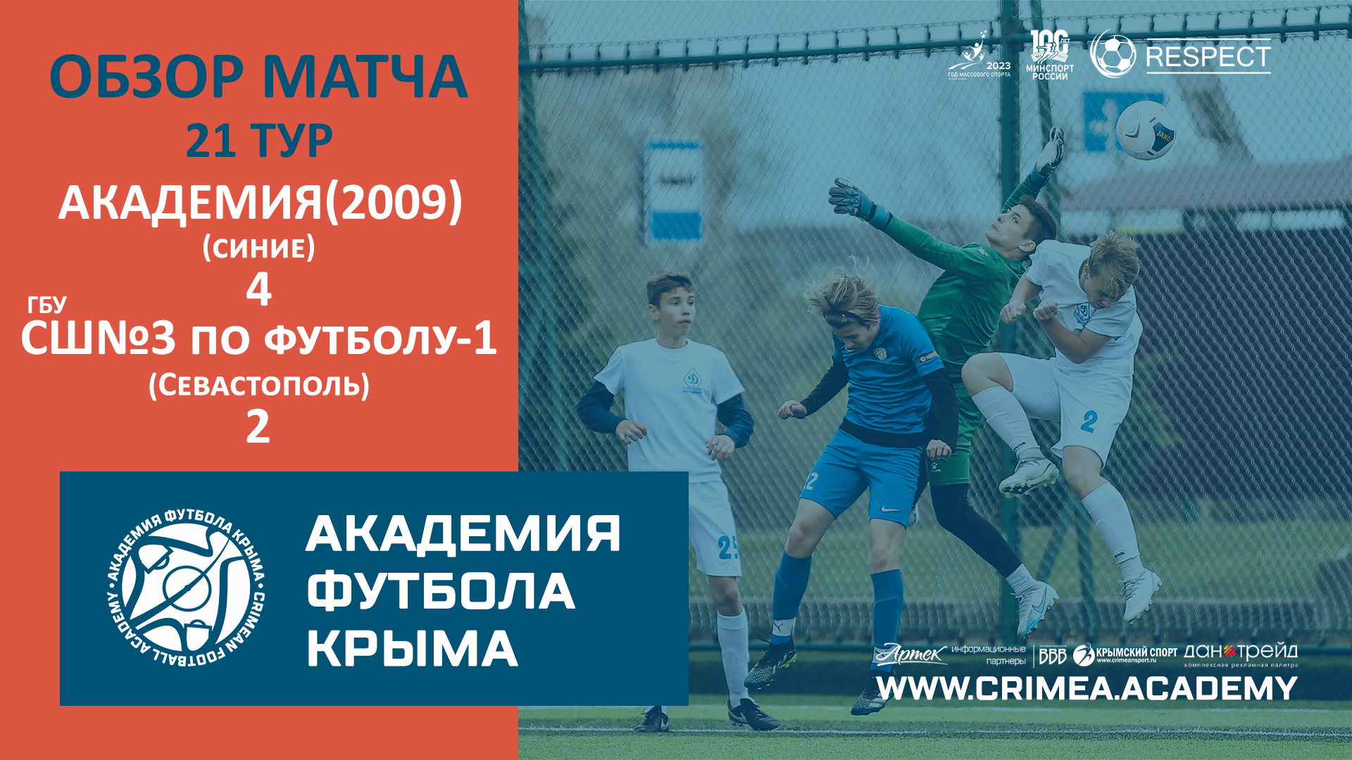 Обзор матча | АФК (2009)-синие - ГБУ СШ №3 по футболу-1 (Севастополь) | ДЮФЛК (08) 22/23 | 21 тур