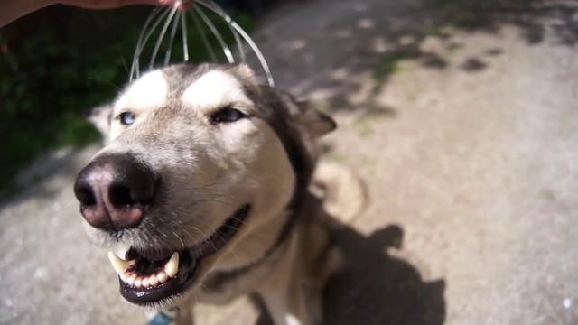 Когда хозяин пришёл к серебристой хаски с массажером для головы, та сначала не поняла, что происходит. Но новый способ чесания привёл её в такой восторг, что собака даже начала улыбаться.