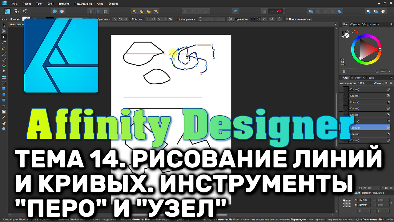 Affinity Designer. Урок 14. Рисование линий и кривых. Типы узлов. Инструменты "Перо" и "Узел"