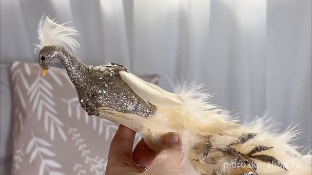 Декоративное украшение СВЕРКАЮЩИЙ ПАВЛИН на клипсе, перо, 41 см, MC40518