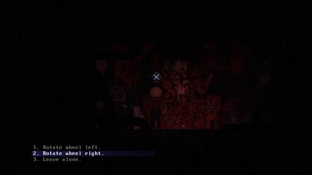 If you complete this puzzle, you will win a heart. The pointy part on the left wheel needs to end up faceing south west and the pointy part on the right wheel needs to end up pointing to the right. You need to complete this puzzle in order to move forward in the game. Claire: Extended Cut https://store.playstation.com/#!/en-us/tid=CUSA03781_00