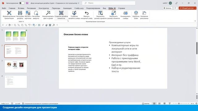 Создание дизайна концепции презентации с помощью Slider AI в PowerPoint
