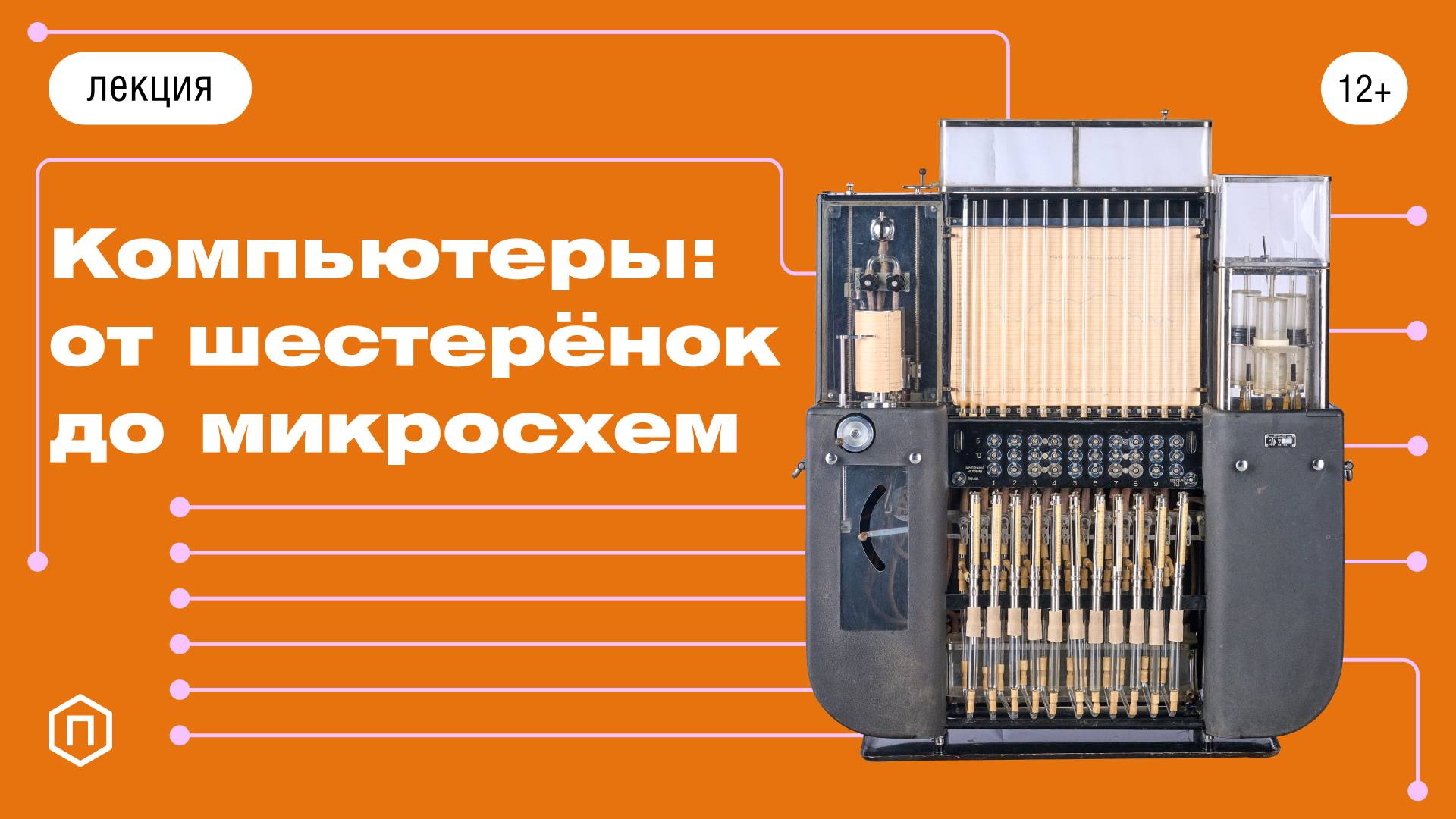 Со словом «компьютер» у большинства из нас связан определённый образ: компактное цифровое электронное устройство, построенное на множестве сложнейших микросхем и оперирующее, как правило, нулями и единицами. И всё-таки вычислительные машины могут быть совершенно иными. Об этом мы и поговорим на лекции «Компьютеры: от шестерёнок до микросхем». Слушатели узнают не только о разнообразии электронных вычислительных машин — впрочем, не всегда двоичных и даже не обязательно цифровых, — но и об устройствах на основе электромагнитных реле, трубок с водой, механических приспособлений и даже потоков воздуха. А иллюстрациями послужат предметы из коллекции Политехнического музея. Среди них комплекс для обработки «больших данных» XIX века, первый — ещё ламповый! — крупносерийный компьютер в нашей стране, гидравлическое устройство для моделирования сложных физических систем и многое другое. Лекцию проведёт экскурсовод Политехнического музея Максим Иванов. Лекция будет интересна школьникам от 12 до 16 лет.
