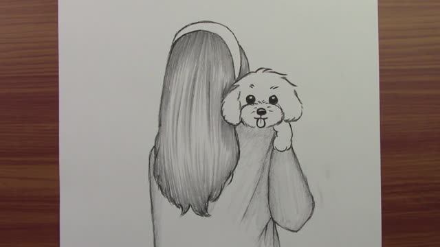 Как нарисовать девочку, держащую милую собаку шаг за шагом