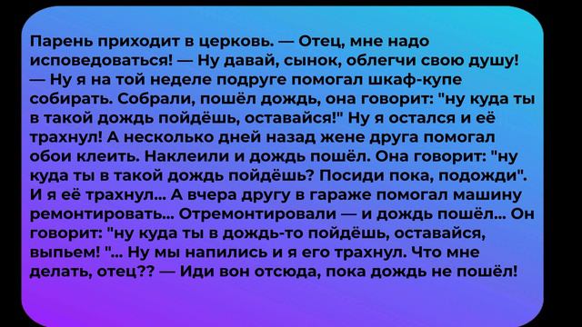 АНЕКДОТЫ. #анекдоты #приколы #анекдот про #смешные анекдоты #анекдоты самые #анекдот года #анекдоты самые смешные #анекдоты до слез #посмешней анекдот Наш канал создан, чтобы принести еще больше позитивных эмоций. Здесь публикуются видео анекдоты, поднимающие настроения любому и в любой жизненной ситуации. Подписывайтесь если Вам понравилось, ставьте лайки, оставляйте комментарии и делитесь с друзьями. В этом видео используется трек Forever Believe (2:42). Автор трека- Jason Shaw, музыка взята с сайта: https://audionautix.com/, тип лицензии - Creative Commons Attribution 4.0 international License (https://creativecommons.org/licenses/by4.0/)