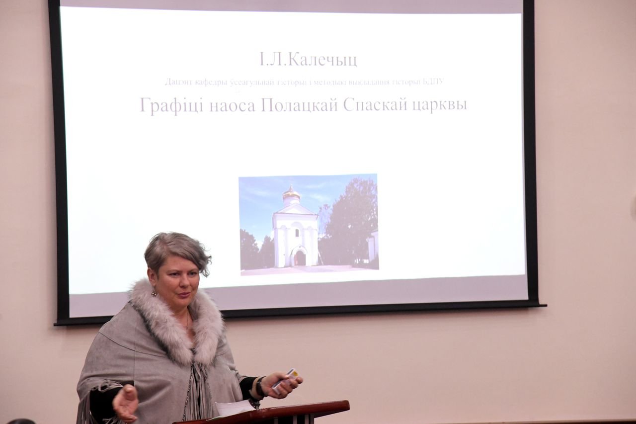 Выступление Калечиц Инны Леонидовны, кандидата исторических наук, доцента кафедры всеобщей истории и методики преподавания истории Белорусского государственного педагогического университета им. Максима Танка, с докладом «Граффити наоса полоцкой Спасо-Преображенской церкви». VIII Международная научно-практическая конференция «История и археология Полоцка и Полоцкой земли», 2022 Пленарное заседание в конференц-зале Национального Полоцкого историко-культурного музея-заповедника, 2 ноября 2022 г. Программа VIII Международной научно-практической конференции «История и археология Полоцка и Полоцкой земли» http://polotsk.museum.by/files/programma_polotsk-8.pdf